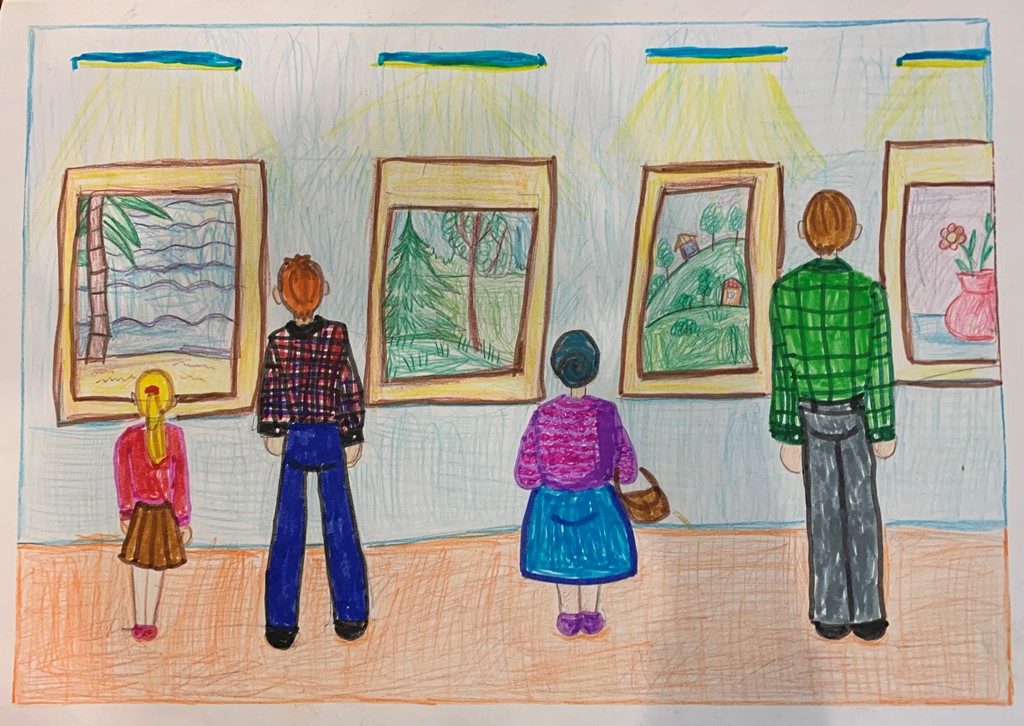 В ярких, красочных рисунках ребята запечатлели здания музея и его филиалов, картины из музейного собрания, а также собственное участие в разнообразных музейных мероприятиях.
