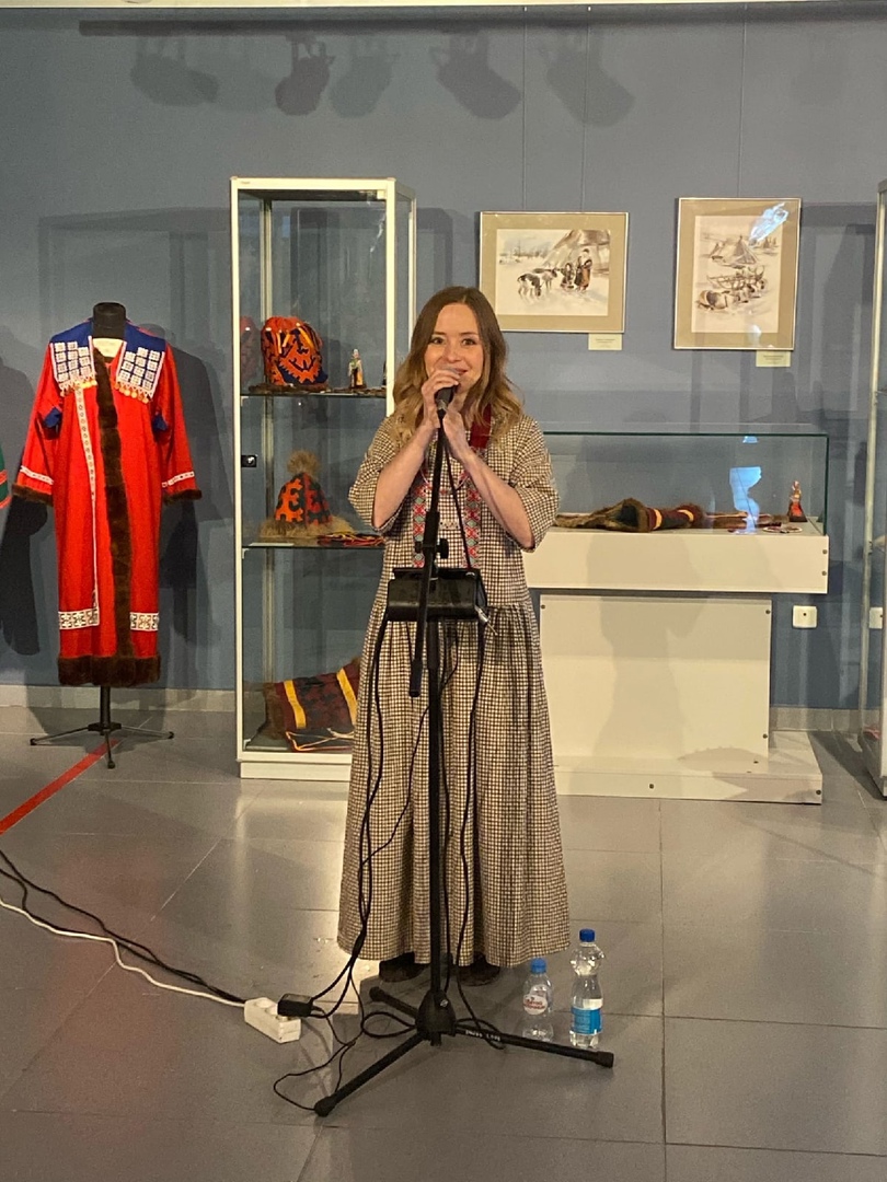 Праздничное настроение своим исполнением подарила гостям выставки югорская певица Вера Кондратьева. Она исполнила песни коренных народов Севера в современной обработке.