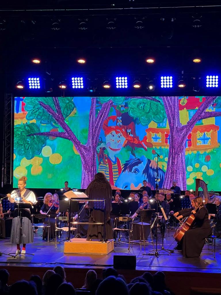 В качестве подарка ребята получили пригласительные билеты на спектакль, где увидели свои композиции на большой сцене концертно театрального центра «Югра-Классик». Актриса Юлия Пересильд читала пьесу на фоне звучания живой музыки большого московского оркестра, а на интерактивных декорациях показывали анимированные рисунки наших детей.