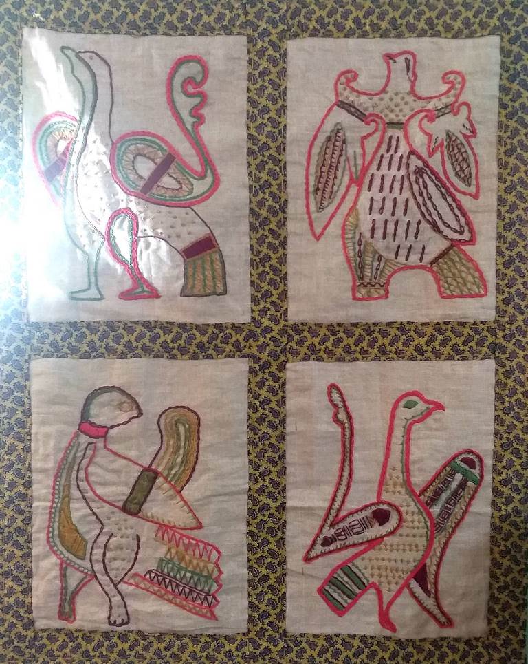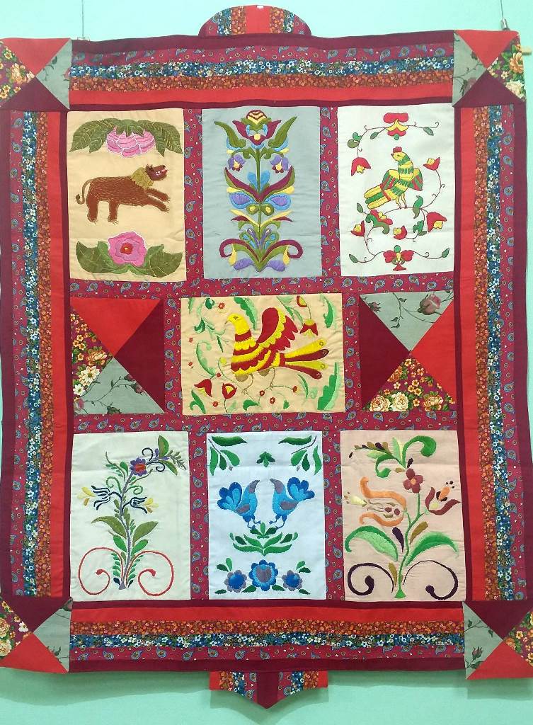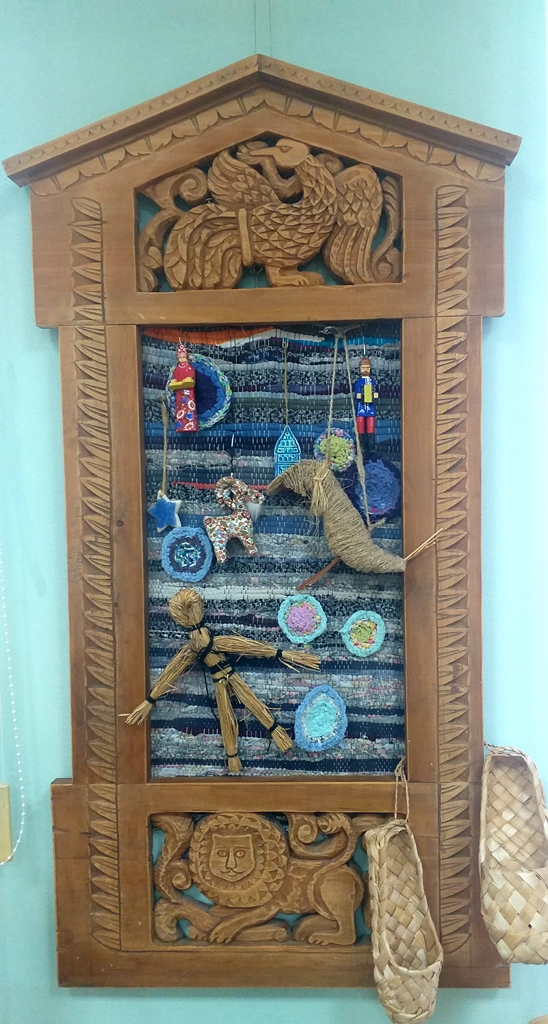 На выставке представлены разнообразные виды народного искусства: лоскутное шитьё, резьба по дереву, роспись по дереву и бересте, вышивка, плетение ковриков, а также детские рисунки на тему празднования Рождества Христова и новогоднего праздника.