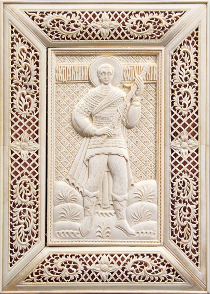 В экспозиции Государственного художественного музея представлена авторская работа Г. Ф. Осипова – резная икона «Святой Дмитрий Солунский», созданная в 2000 году. Это великолепный образец гармоничного сочетания рельефной и пропильной орнаментальной резьбы. В иконе воплощен глубоко продуманный и одухотворенный образ святого воина. Белая мамонтовая кость словно усиливает сакральное сияние и величие святого.