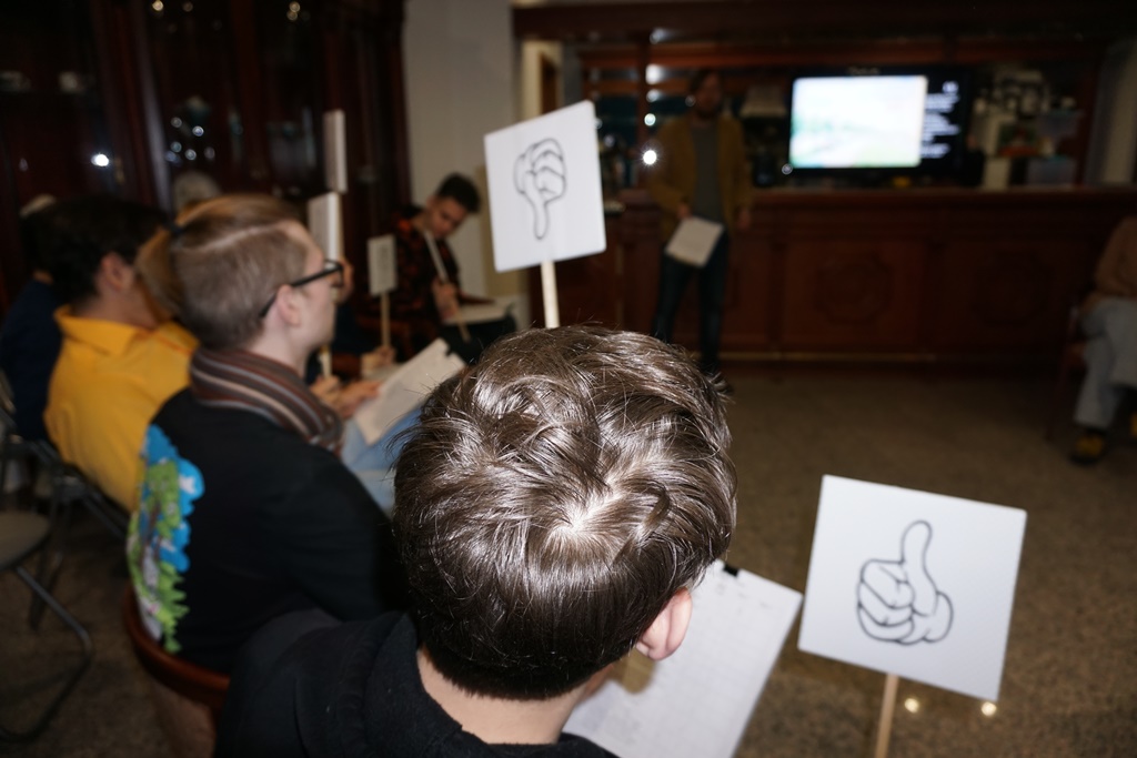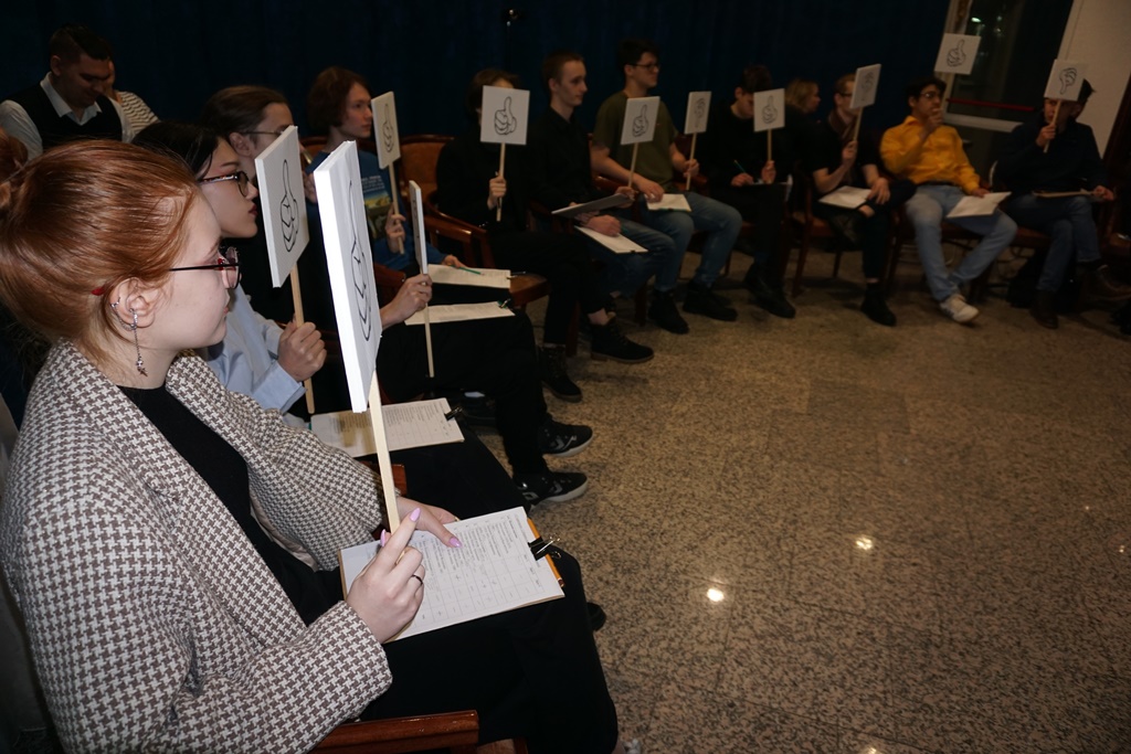 Пафосно? Вполне. Зато само заседание клуба экспертов прошло легко и даже с юмором. Постаралась не только организаторы, но и участники – студенты. Будущие специалисты в самых разных сферах. От деревообработки до гостиничного бизнеса. Были и начинающие художники. Впрочем, недюжинную эрудицию в вопросе показали все. Шутили и спорили тоже.