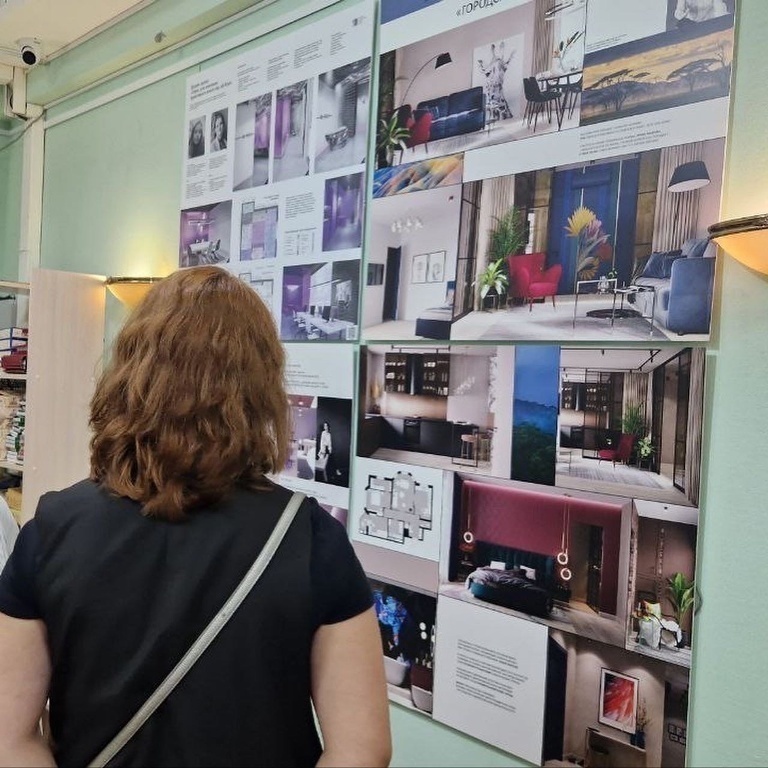 На выставке «ЭКОСИСТЕМА» посетители могут познакомиться с работами 29 дизайнеров изчетырех субъектов РФ: городов Кемерово, Курган, Тюмень и Ханты-Мансийского автономного округа – Югры. На планшетах – дизайн-проекты жилых и офисных помещений, театральных афиш,