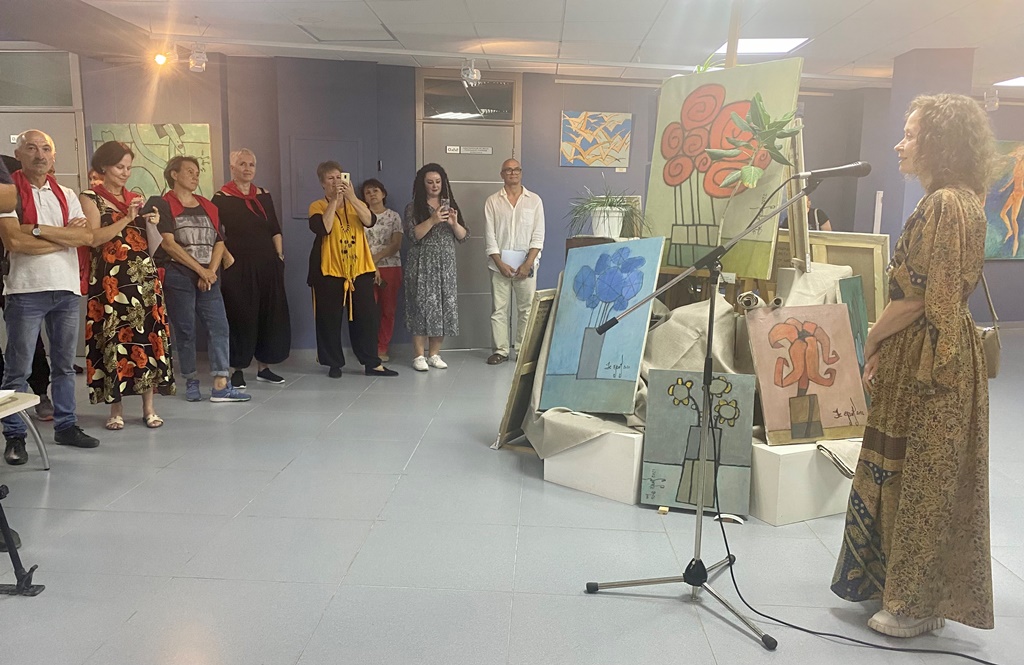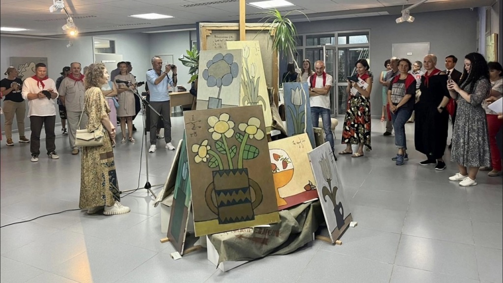 Гостей выставки приветствовали руководители региональных отделений творческих союзов: Василиса Викторовна Портнова (Союз художников России) и Валерий Васильевич Служивцев (Творческий союз художников России).