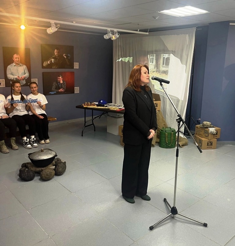 Елена Викторовна поздравила собравшихся с открытием и отметила: «Мы презентуем особенную выставку. Выставку о ежедневных подвигах, о героизме, об отваге, об уважении к тем людям, которые объединились и оказывают волонтерскую помощь…».