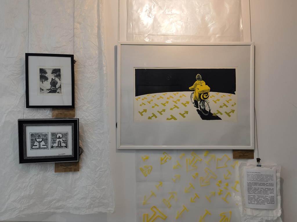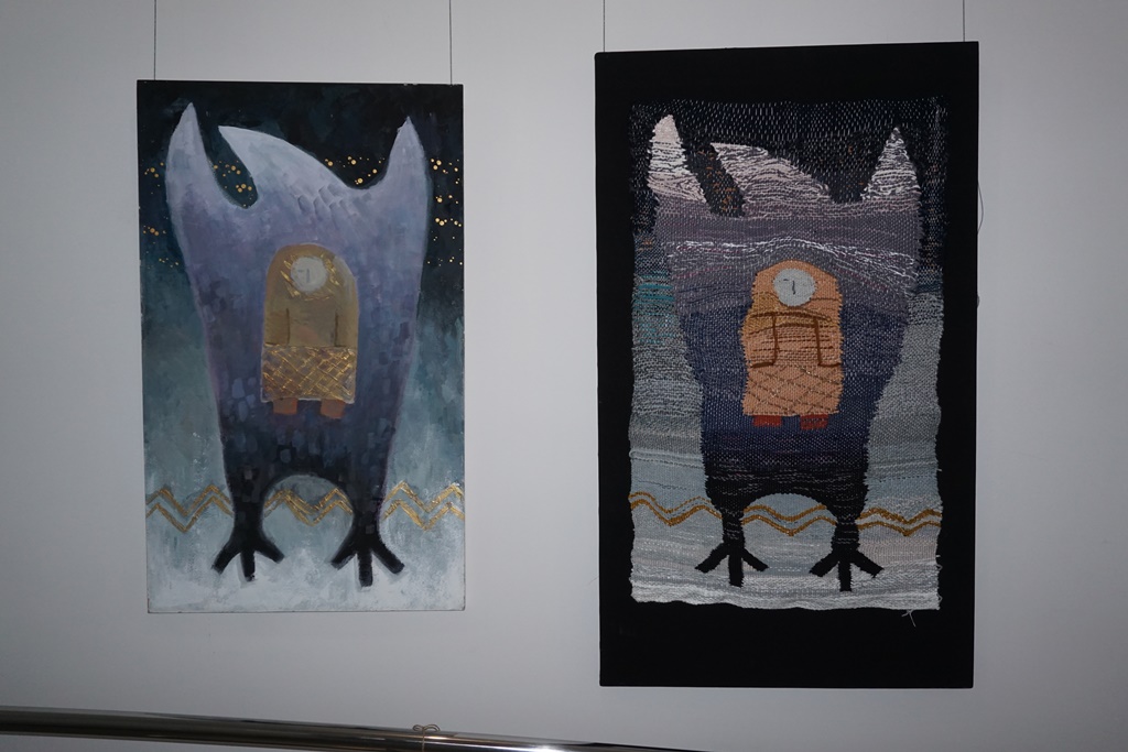 Надя Макаренко (Сургут) изобразила человека во всех его проявлениях – одинокого и влюблённого, грустного и смешного, нелепого и смелого, страшного и милого, глупого и задумчивого, уродливого и невероятно красивого. Произведения Татьяны Ильченко (Нижневартовск) декоративны и стилизованы, а яркие оттенки и необычные цветосочетания придают работам индивидуальность. Анастасия Шемякина (Сургут) представила свои вариации по мотивам хантыйской сказки «Как ворон землю мерил» в разных техниках – живопись и гобелен.