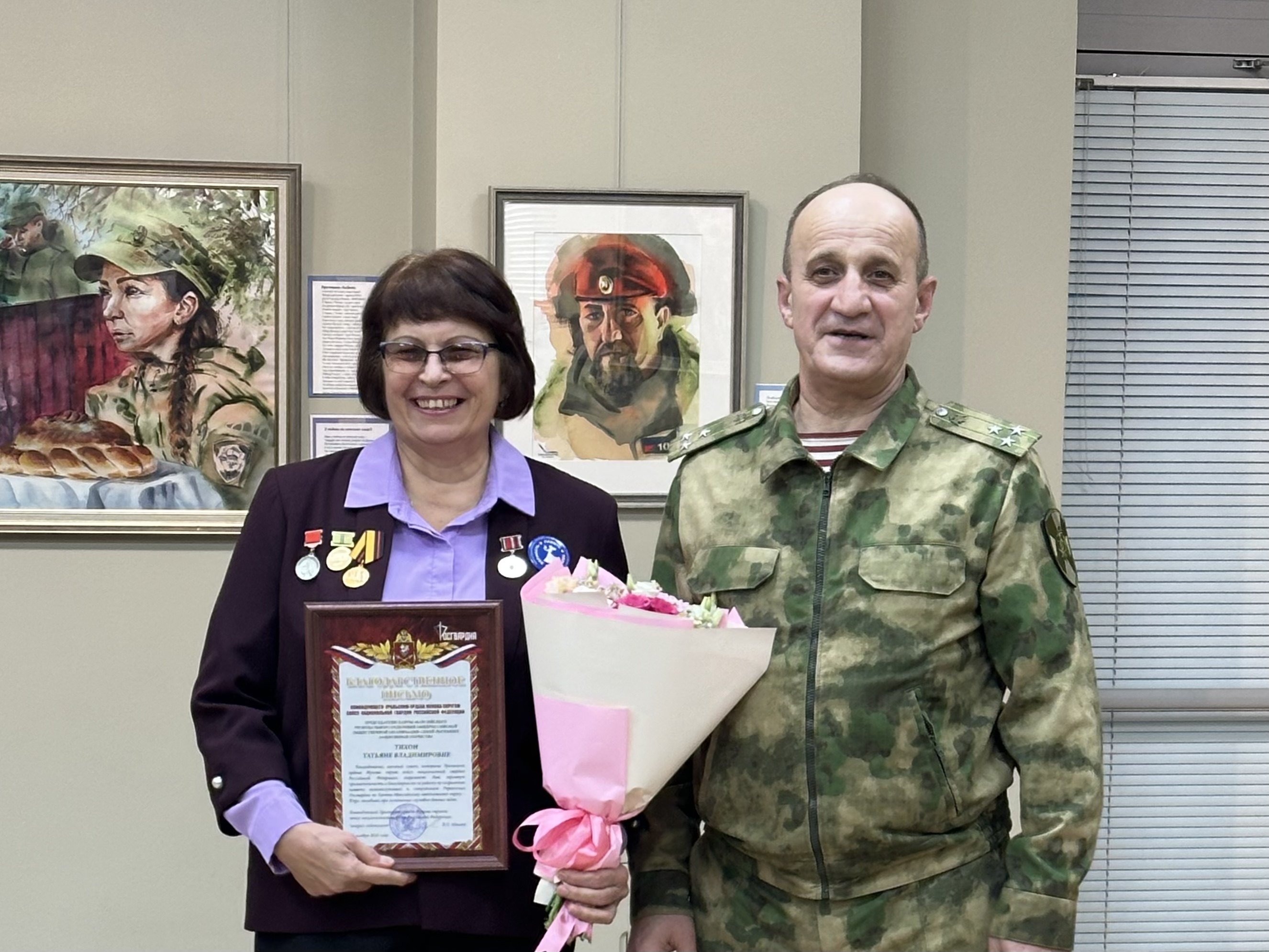 Особую значимость мероприятию придало присутствие почетных гостей. Заместитель командующего Уральским округом войск национальной гвардии Российской Федерации по военно-политической работе, полковник Лом-Али Дааев вручил благодарственные письма организаторам и партнерам выставки, отметив важность такой моральной поддержки для военнослужащих и их семей. Награды получили Юлия Виноградова, Денис Ульянов, а также представители ветеранских и патриотических общественных организаций.