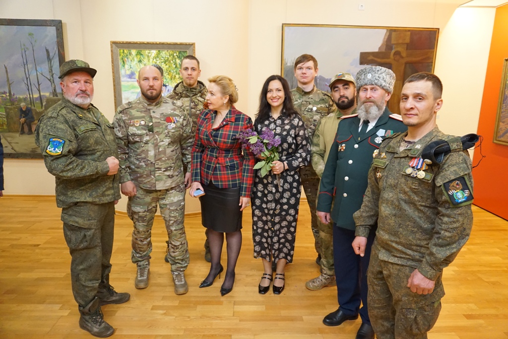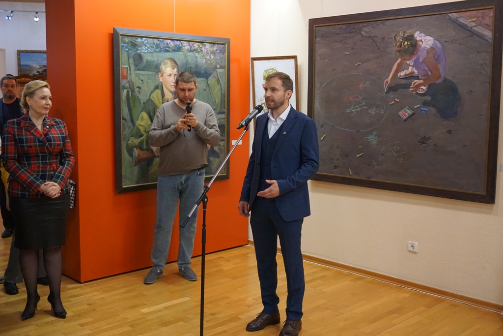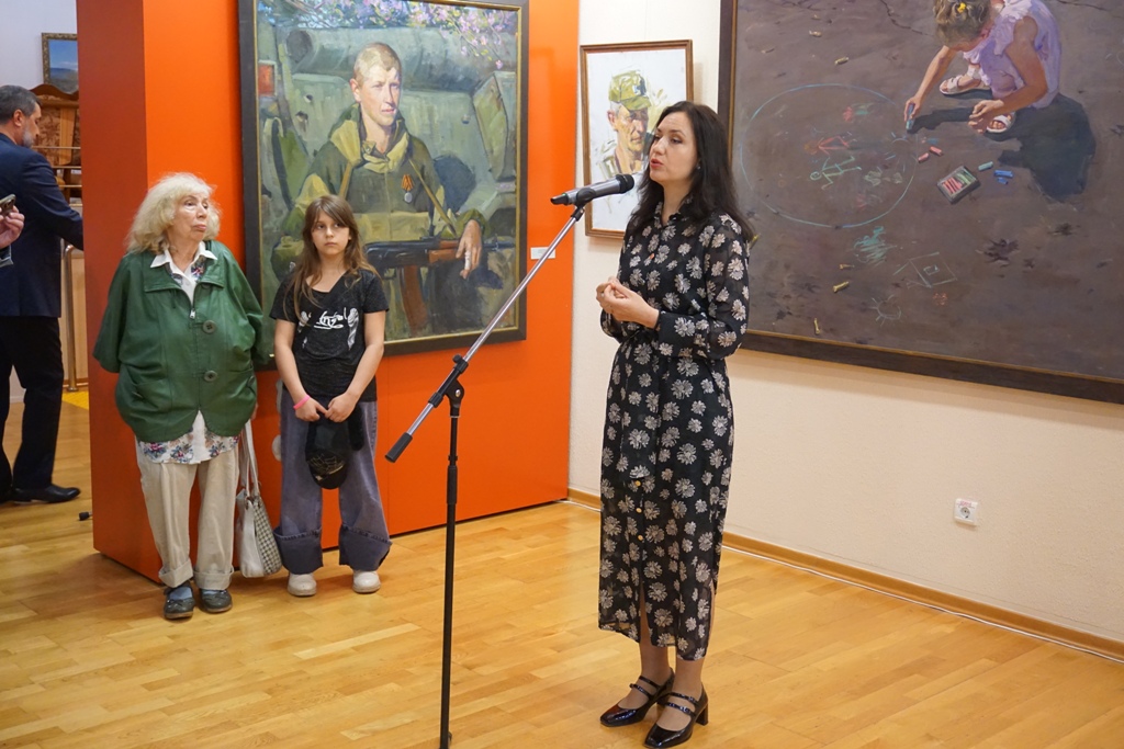 В Ханты-Мансийске впервые выставлены произведения известных российских художников: А. Крюкова, М. Фаюстова и Т. Пономаренко-Левераш. Алексей Крюков и Максим Фаюстов представляют Московский Союз художников, Татьяна Пономаренко-Левераш – член Союз художников России, член Международной ассоциации изобразительных искусств АИАП ЮНЕСКО, сопредседатель Донецкого регионального отделения Общероссийского общественного движения «Культурный Фронт России», руководитель творческого объединения «Летописец Донбасса». Слова приветствия Татьяны Витальевны открыли выставку. Художник эмоционально рассказала историю противостояния народа Донбасса, которая и нашла отражение в работах художников – глубоком эмоциональном свидетельстве трагедии и мужества.