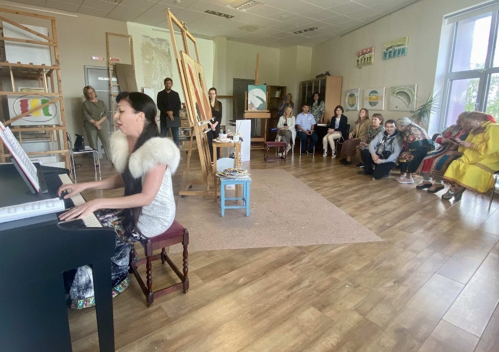 Музыкальный настрой гостям выставки задала Дарья Кунина – научный сотрудник Этнографического музея под открытым небом «Торум Маа», – исполнив наигрыши и народные мотивы на сынквылтапе.