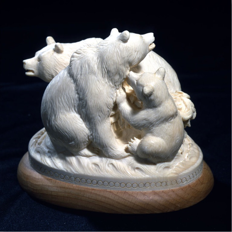Бивень мамонта, дерево/ резьба объемная, монтирование. 12х14,6х11,5 см.