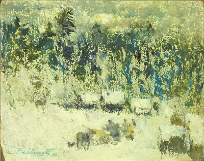 Снегири. Этюд к картине «Снегири–дети севера»