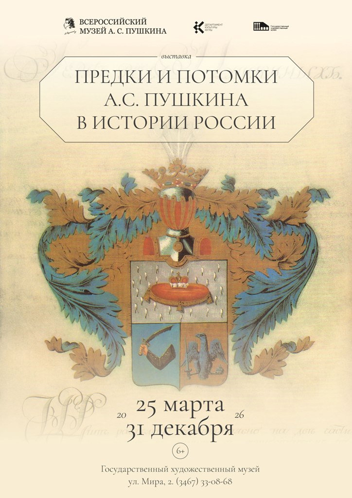 • 25 марта 2026 года в Государственном художественном музее Югры (г. Ханты-Мансийск) открывается региональный центр Всероссийского музея А. С. Пушкина. В этот же день по традиции открывается планшетная выставка «Предки и потомки А.С. Пушкина в истории России»