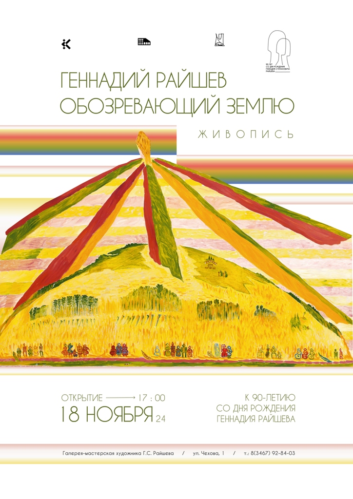 18 ноября в 17.00 в Галерее-мастерской Г.С. Райшева, филиале Государственного художественного музея, состоится торжественная презентация выставки произведений Г.С. Райшева «Обозревающий Землю». Выставка подготовлена к 90-летию со дня рождения Г.С. Райшева, заслуженного художника России, и посвящена его памяти.