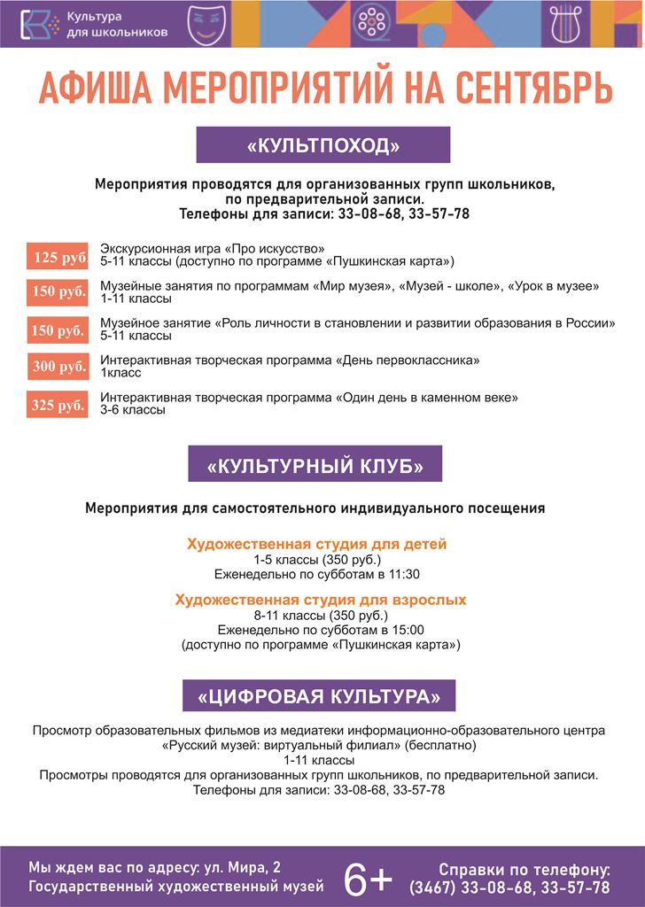 Культура для школьников в сентябре