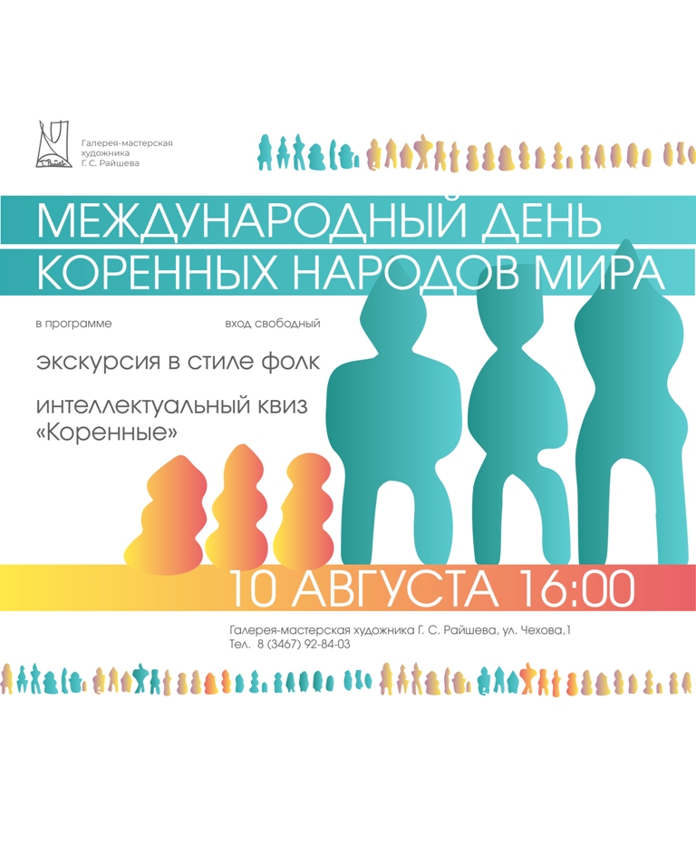 10 августа 2023 в 16.00 приглашаем всех желающих в филиал «Галерея-мастерская Г.С. Райшева» на празднование Международного дня коренных народов мира.