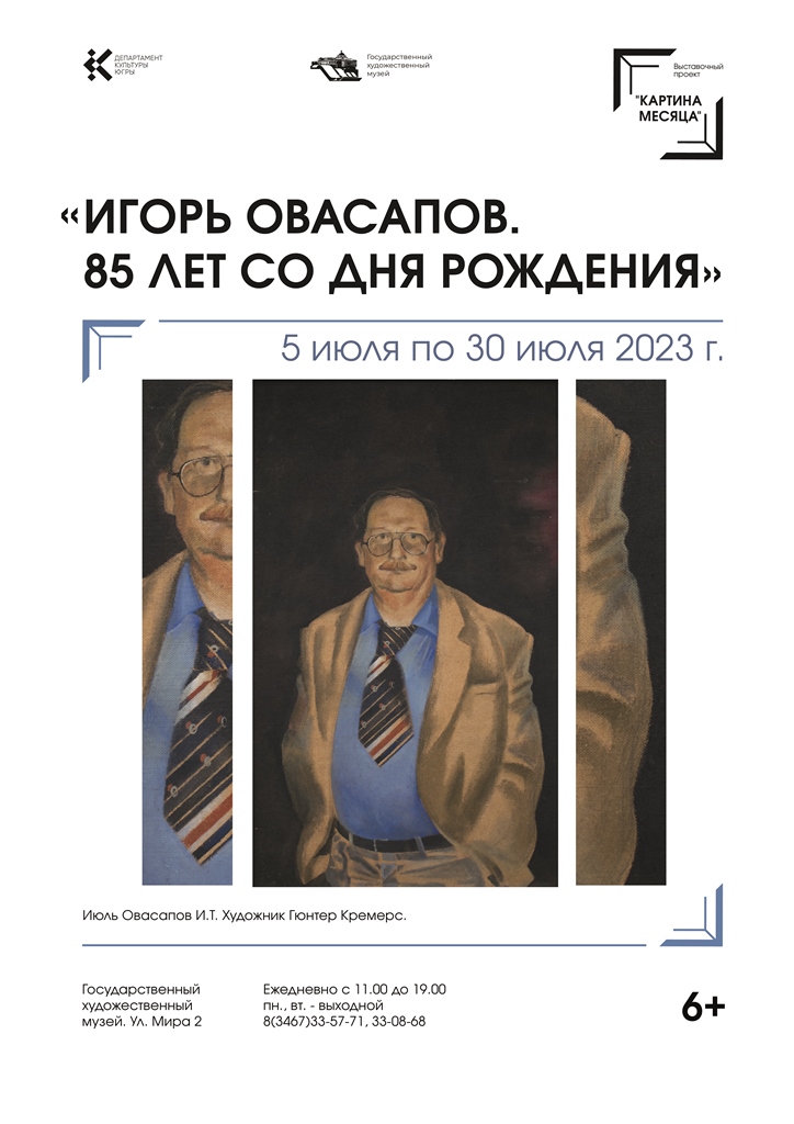 В 2023 году исполняется 85 лет художнику-графику, плакатисту, Заслуженному деятеля искусств РФ И. Т. Овасапову (1938). К этой дате в рамках выставочного проекта «Картина месяца» в экспозиции будет представлена живописная работа «Художник Гюнтер Кремерс» (1988).