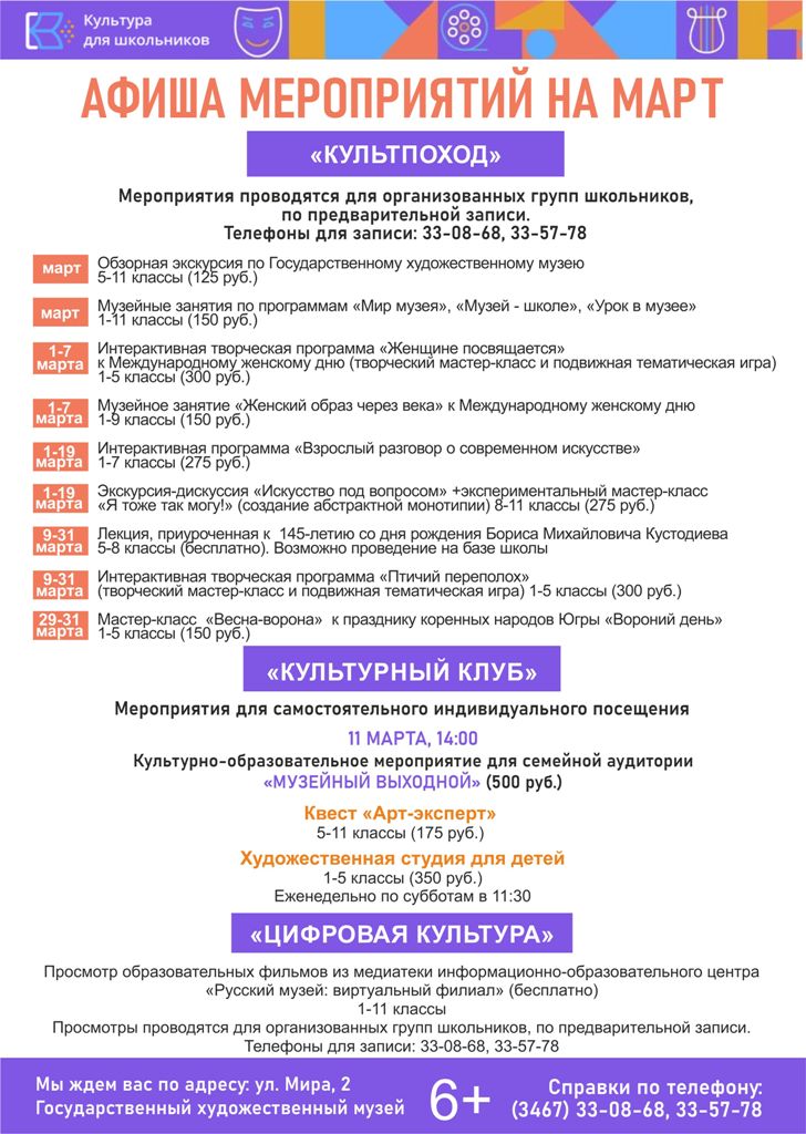 «Культура для школьников» в марте