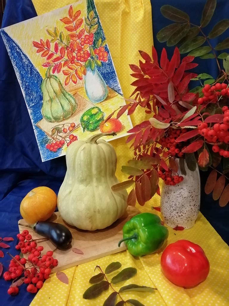 На мастер-классе вы под руководством опытного педагога нарисуете осенний натюрморт с натуры масляной пастелью.