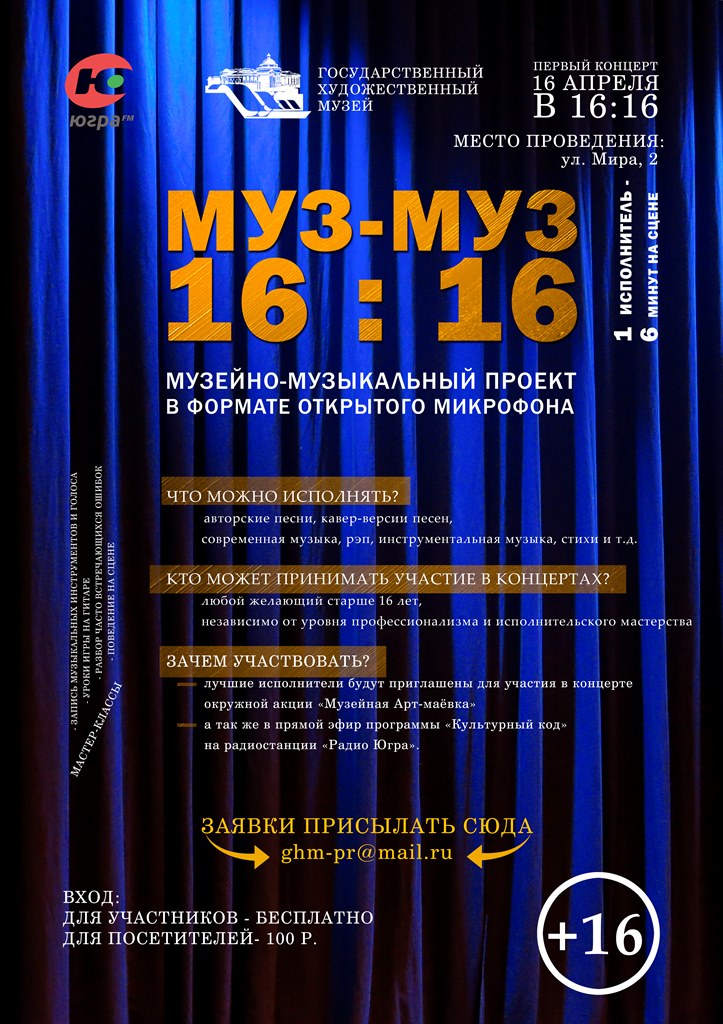 Участвуй в Музейно-музыкальном проекте в формате открытого микрофона «Муз-Муз 16:16»!
