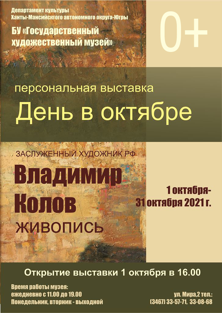 Выставка «День в октябре» посвящена 60-летнему юбилею художника, в экспозиции будут представлены лучшие живописные произведения, отражающие удивительную свободу самовыражения автора.