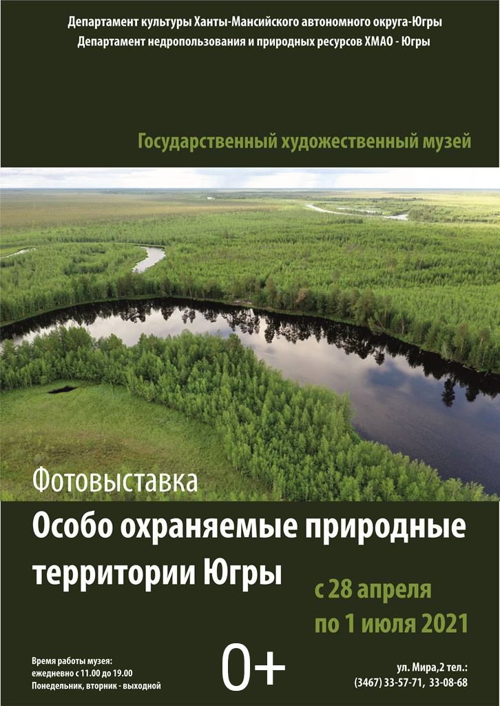 С 28 апреля по 1 июля 2021 года в Государственном художественном музее будет работать фотовыставка «Особо охраняемые природные территории Югры», организованная совместно с Департаментом недропользования и природных ресурсов Ханты-Мансийского автономного округа - Югры. Выставка посвящена заповедной природе Югры.