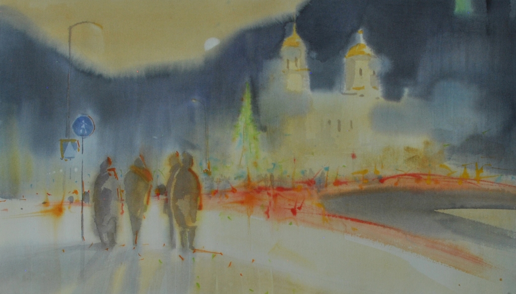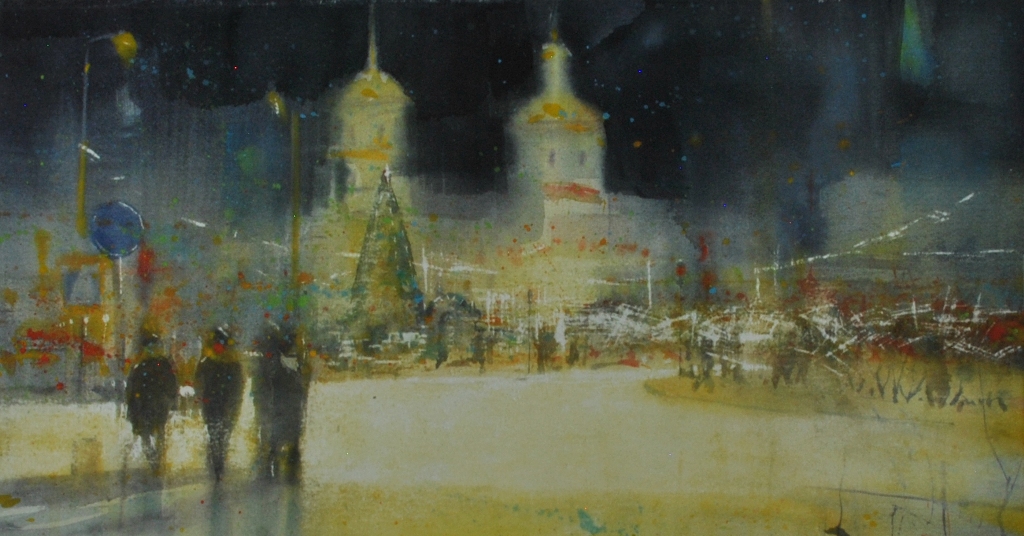 Николай Устюжанин умело использует технику акварели, чтобы создать выразительные и тонкие по цвету произведения. В своих спокойных и задумчивых картинах художник создает воздушные пейзажи, с помощью нежной полупрозрачной краски передавая силуэты людей, зданий, очертания горизонта. На его акварели можно смотреть бесконечно, они как будто способны останавливать время и переносить зрителя в мир, полный гармонии и спокойствия.
