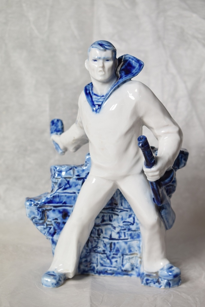 Фарфор на выставке представлен работами известных мастеров фарфорового искусства, такими как Сергей Соколов (1956), Нина Троицкая (1959), Андрей Ларионов (1948–1991) и другие. Привлекают внимание фарфоровые фигурки Ольги Богдановой (1921–2006): они воплощают трогательный героизм защитников. «Нахимовец» Асты Бржезицкой (1912–2004) представляет образ юного героя, символизирующий мужество и преданность Родине. Уникальная скульптура «Маршал Ворошилов» (1940) Роберта Таурита (1906–1969) воплощает образ военачальника, ставшего символом силы и лидерства в годы войны.