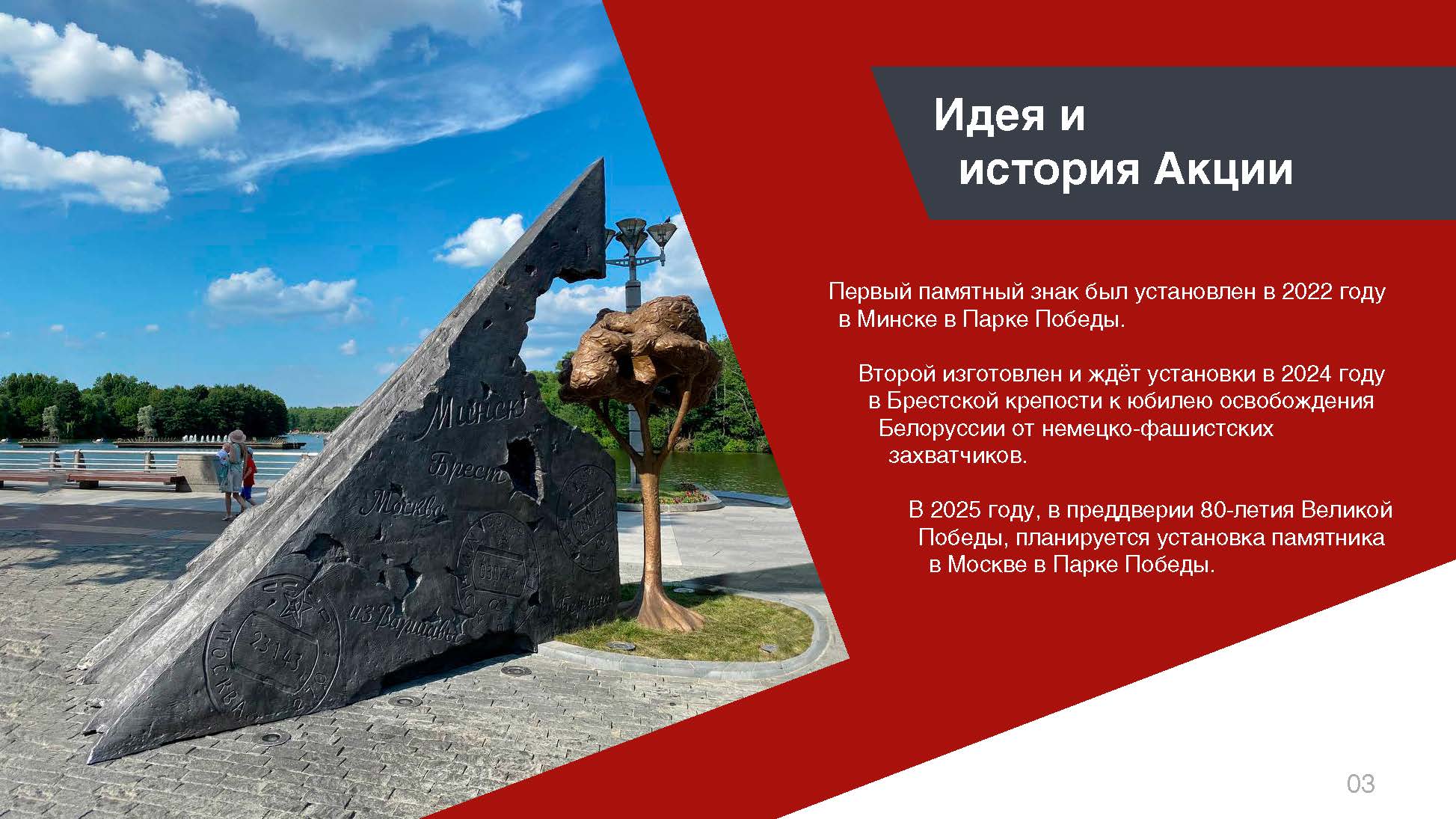 Первый такой памятный знак установили в 2022 году в Минске в Парке Победы, второй ждёт установки в этом году в Брестской крепости к юбилею освобождения Беларуси от немецко-фашистских захватчиков.