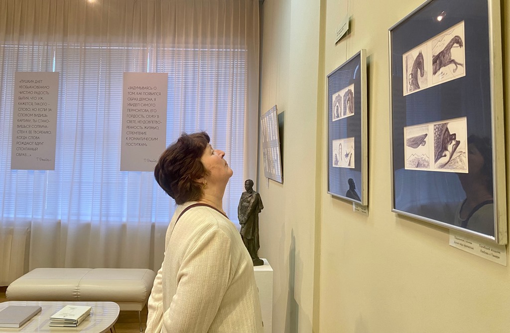 Об экспозиции рассказала член Союза художников России, заведующий научно-экспозиционным отделом Наталья Федорова: «Впервые мы показываем выставку литературной классики Райшева в таком составе – Пушкин и Лермонтов. И это по-особому звучит в этом зале: два любимых поэта художника, два контраста отражают и самого Райшева…».