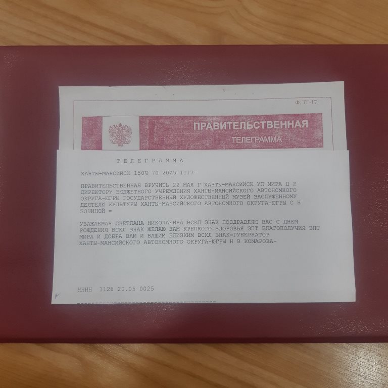Светлану Николаевну Зонину поздравили на высоком уровне. Губернатор Ханты-Мансийского автономного округа - Югры Наталья Владимировна Комарова направила правительственную телеграмму с пожеланиями крепкого здоровья и благополучия.