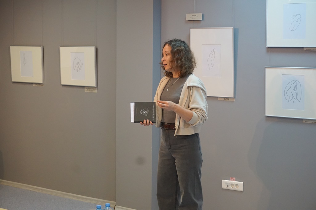 Двух творцов действительно связывает многолетний диалог. За последние двадцать лет вышло около десятка изданий с иллюстрациями Геннадия Райшева, созданными по просьбе писателя и представленными на выставке. В них вошли и посвященные художнику литературные очерки и эссе А.К. Омельчука, первый из которых - «Зеленое солнце» - написан в начале 1980-х годов, время открытия художника для публики. И, конечно, серия иллюстраций к сборнику стихотворений А.К. Омельчука «Я целую твой голос». Их на выставке большинство. Всего предметов в экспозиции насчитывалось 57 штук.