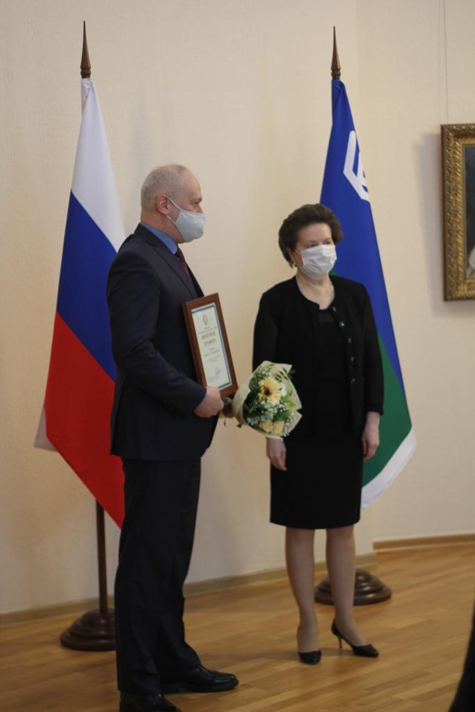 Глава региона вручила государственные и президентские награды, а также награды Ханты-Мансийского автономного округа - Югры врачам, общественным деятелям, предпринимателям, артистам и чиновникам. За вклад в борьбу с пандемией коронавируса.