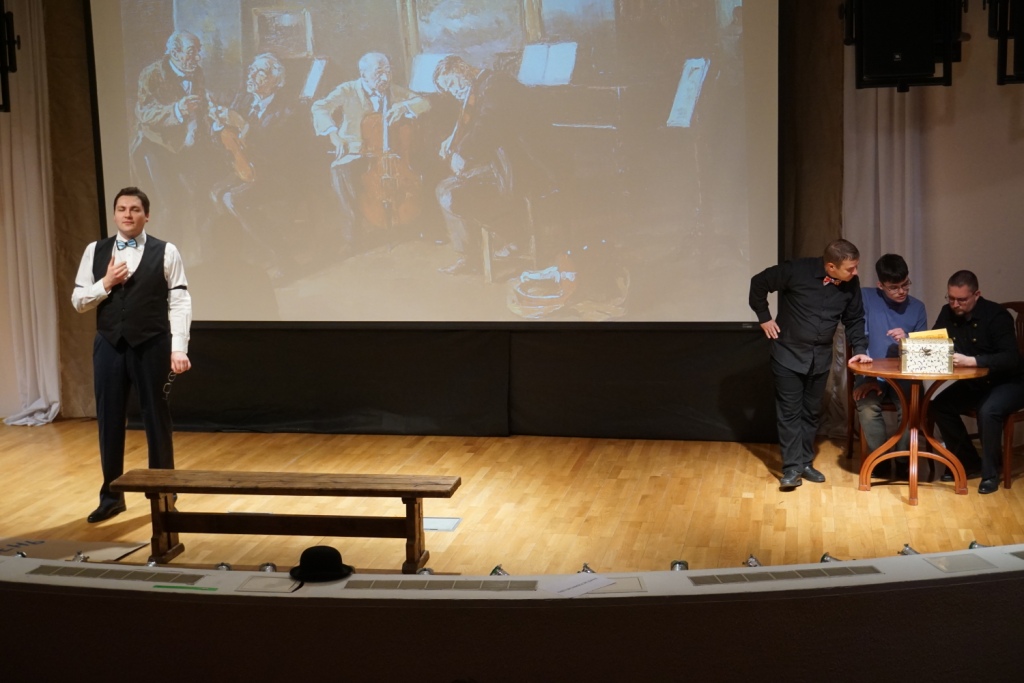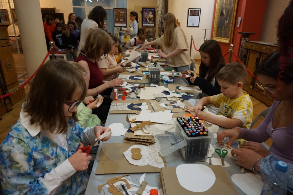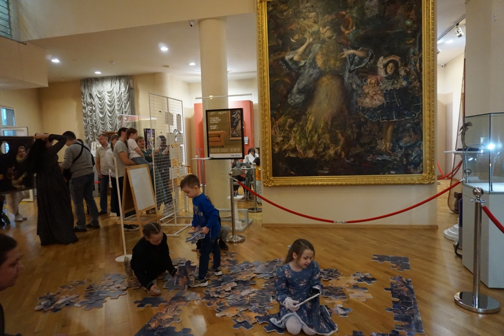 Труппа музейного театра «Четыре искусства» устроила для зрителей творческую лабораторию «Сказки о картинах», включающую спектакль и интерактивную часть. Любой смог почувствовать себя артистом.