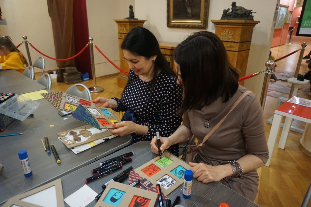 Для всех желающих провели тематическую экскурсию «Семья на картине». А в фотозоне «Через призму времени» можно было самому стать частью произведения искусства. Особенно пришлась по душе идея с подвесными тантамаресками.