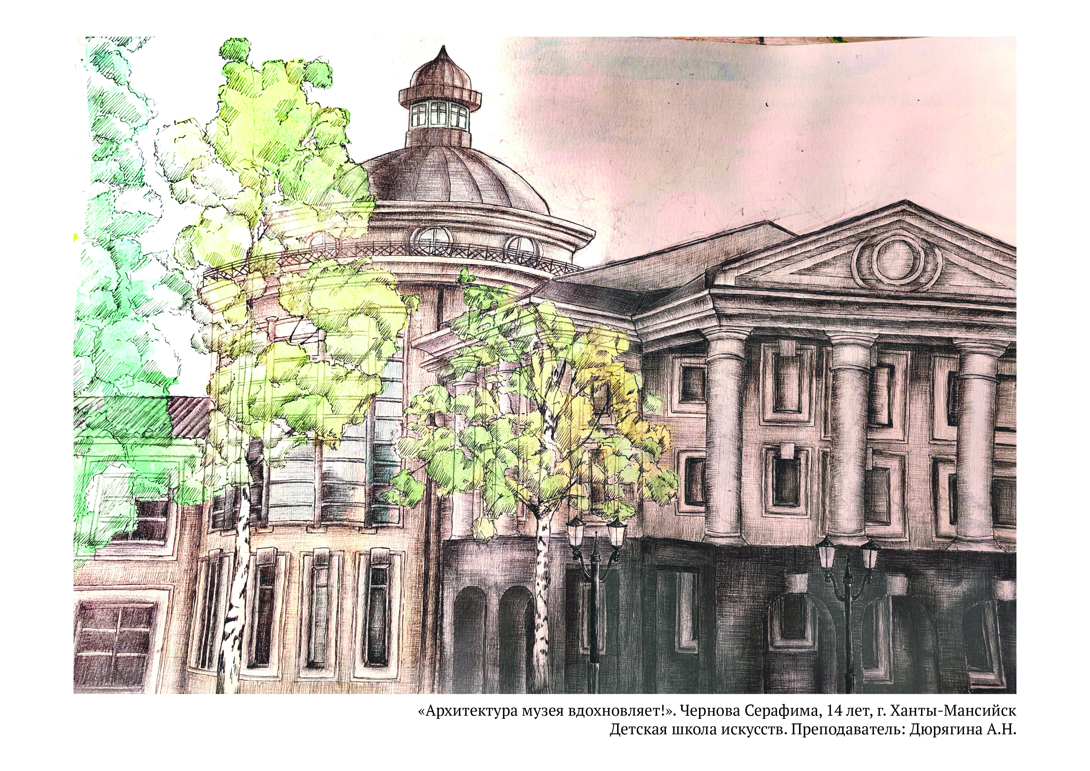 В рисунках участники конкурса отразили свои впечатления от посещения музейных выставок и мероприятий, нарисовали свои любимые экспонаты и здание музея.