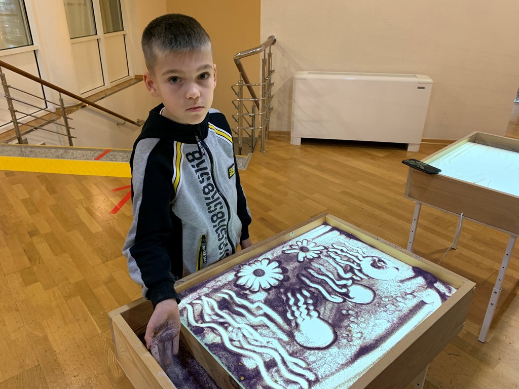Для тех, кто захотел передохнуть во время насыщенной программы, были организованы зоны отдыха – столы для рисования песком, показ мультфильмов и детский уголок.
