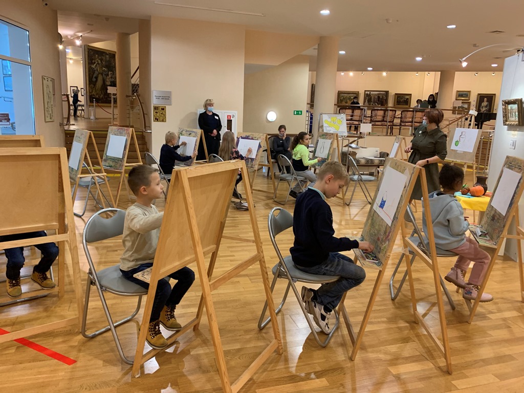 Квест «Осенний променад» провел гостей по залам музея и познакомил с произведениями русских художников. Натюрморт в Рисовальном классе приглашал полюбоваться дарами осени и запечатлеть их в рисунке пастелью. С необычной художественной техникой набрызга познакомились участники мастер-класса «Осенний гербарий», а на мастер-классе «Открытка для учителя» ребята изготовили стильные открытки в технике скрапбукинга. В тематической игре «Осеннее лукошко» посетителей ждали осенние загадки, пословицы и скороговорки; участники игры собирали пазл по картине, проявляли ловкость и сообразительность в соревнованиях «Собери грядку» и «Белкины припасы».