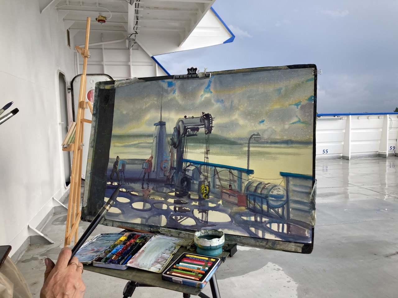 В порту гостей встречал генеральный директор АО «Северречфлот» Айрат Чумарин. Почти сразу после визита Айрат Раисович предложил художникам стать участниками творческого рейса на борту теплохода «Ямал». В расписание мероприятий внесли дополнения.
