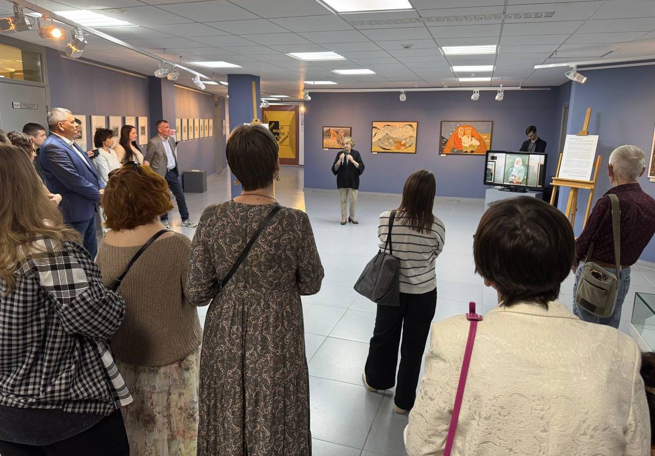 С экспозицией выставки гостей познакомила куратор, член Союза художников России Наталья Федорова, обратив внимание на то, что визуальный ряд выставки дополняет видеофильм с картинами, выполненными М. Захаровым в 2020-х годах.