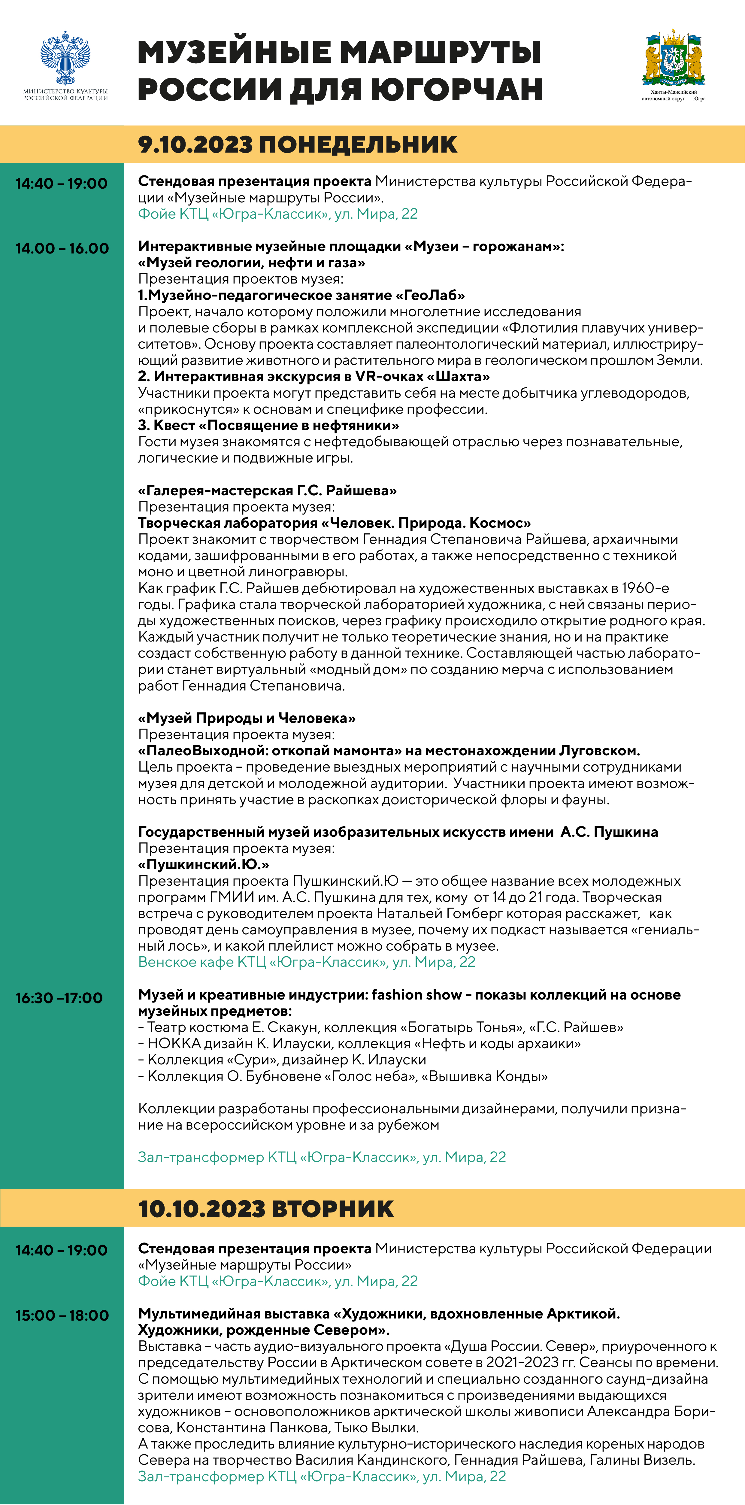 Предлагаем вниманию гостей и жителей Ханты-Мансийска программу форума «Музейные маршруты России», который проходит в концертно-театральном центре «Югра-Классик».