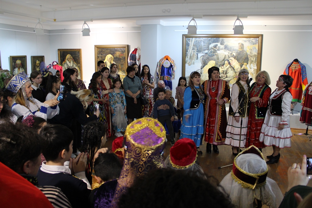 В экспозиционном зале второго этажа прошла акция «Хоровод» при участии представителей девяти национальных диаспор города Ханты-Мансийска. Участники в ярких национальных костюмах кратко рассказали о культуре своего народа, исполнили музыкальные номера, прочли стихи на родных языках. Затем состоялся парад национальных костюмов «Хоровод дружбы».