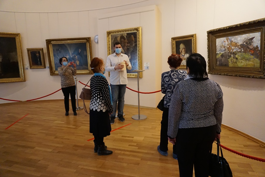 Участники мероприятия познакомились с произведениями А.Э. Гофмана «Насмешница» и Ф.А. Малявина «Автопротрет с женой и дочерью».