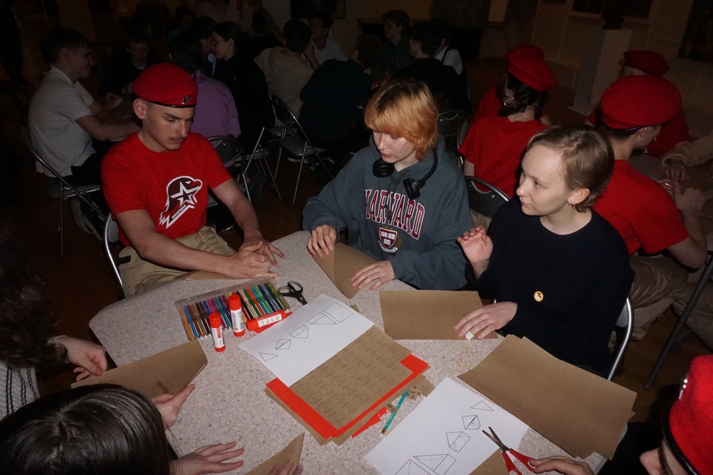 Об истории создании полотна «Трудные годы» и о важности сохранения памяти о той войне и подвигах ветеранов её рассказали юнармейцам из Ханты-Мансийской школы № 3. Также для них провели экскурсию по выставке «Искусство советского периода», где они смогли познакомиться с произведениями К.С. Петрова-Водкина и других художников XX века. Затем состоялся мастер-класс по изготовлению аналога знаменитого «фронтового треугольника» - письма треугольной формы, которого так ждали матери, сёстры и невесты. А ребята могли написать письмо своим бабушкам и дедушкам или просто стихотворение о войне.