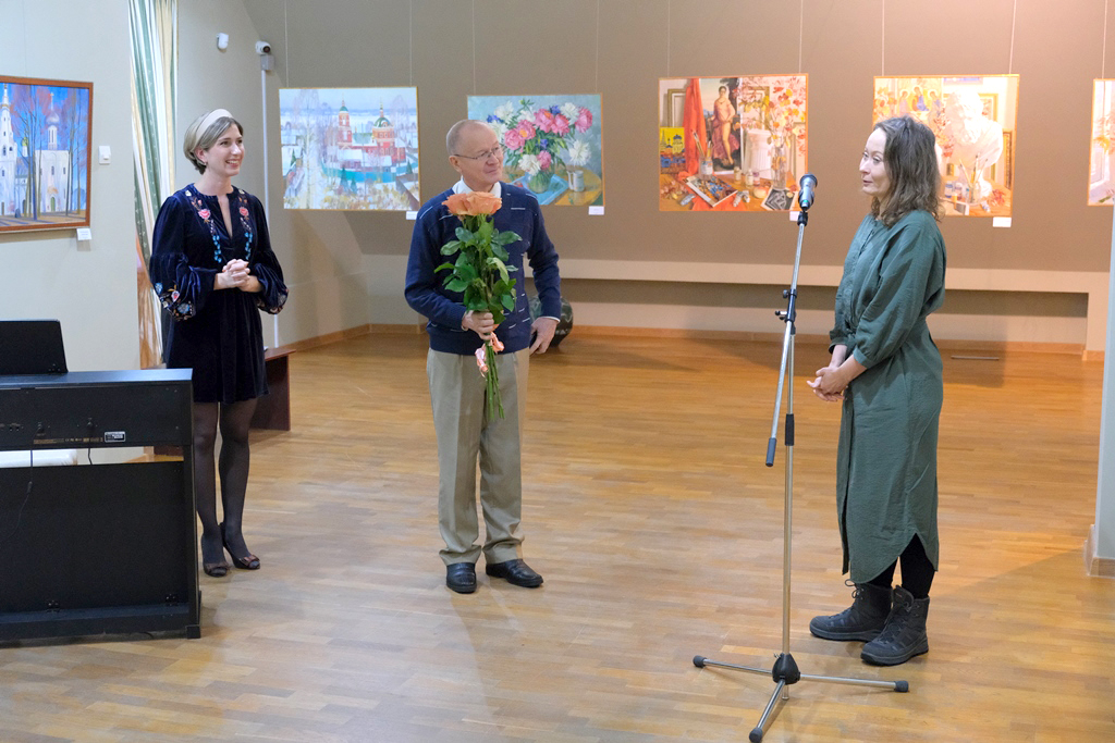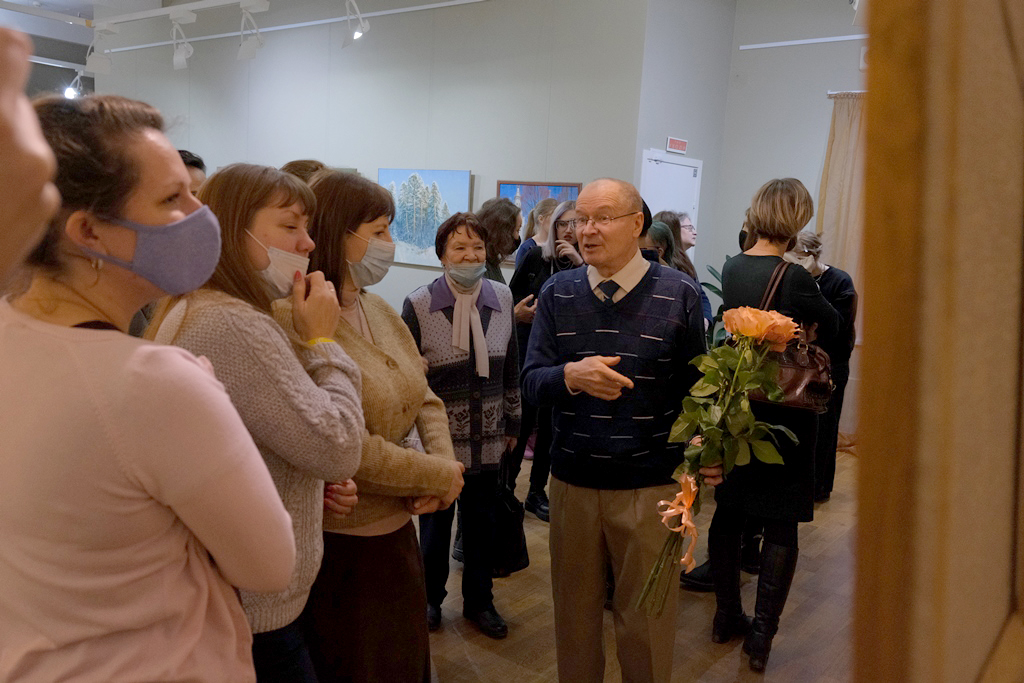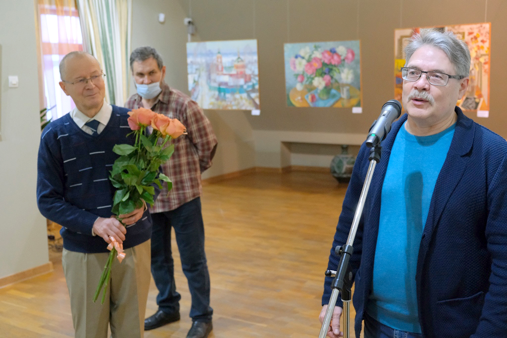 Поприветствовать юбиляра на открытии персональной выставки пришли члены региональных отделений Союза художников и Союза писателей России, студенты творческих специальностей. Музыкальные номера для гостей вернисажа подготовили студенты Центра искусств.
