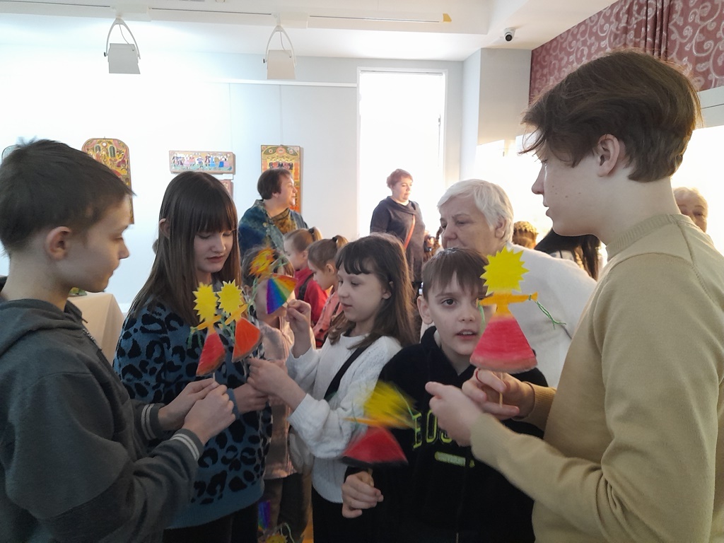 Среди первых зрителей были дети из Луганской и Донецкой народных республик. Ребята сделали на мастер-классе куклу-Масленицу и затем с увлечением угадывали на выставке героев русских сказок, считали резных лошадок, знакомились с народными орнаментами. «Мы хотим прийти на выставку еще раз и выполнить элементы городецкой росписи на мастер-классах!» - так прозвучали слова благодарности от наших гостей.