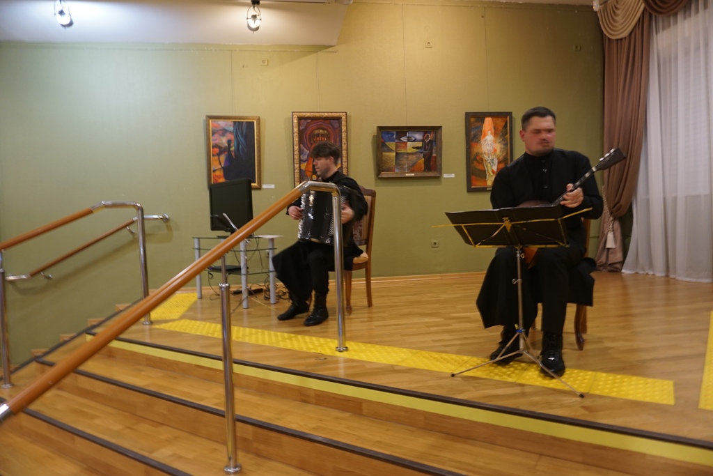 Музыкальной программой «Toosolo» порадовали гостей фестиваля лауреаты всероссийских и международных конкурсов, солисты КТЦ «Югра-Классик» Алексей Пересидлый (баян) и Андрей Попов (балалайка).