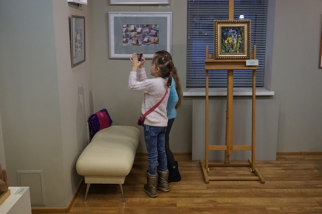 Современные и неожиданные художественные идеи, новые образы – были представлены в живописных, графических, скульптурных работах, а также объектах декоративно-прикладного искусства. Экспозиция демонстрирует широкий диапазон произведений современного искусства. Большая часть работ выполнена в технике классической масляной живописи: это живописные пейзажи, натюрморты, абстрактные композиции Александра Визеля, Владимира Колова, Николая Устюжанина, Владимира Видинеева и других членов Союза художников России.