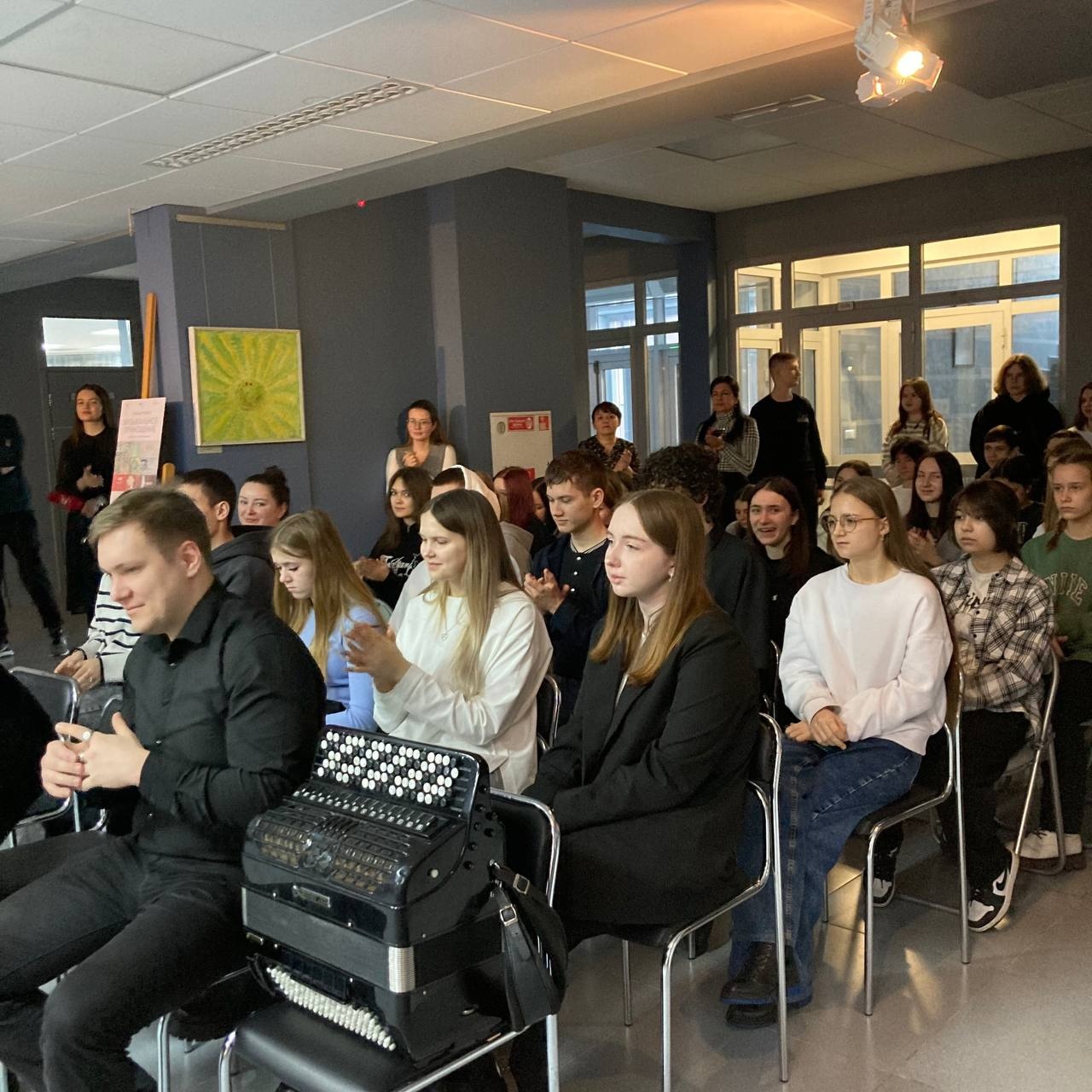Артисты концертно-досугового центра «Октябрь» Михаил Бишанов и Евгений Бабурин выступили с музыкальными композициями военных лет. Песни «Алеша» и «Обелиск» звучали в унисон коллажам Сергея Ларенкова, а песню «Катюша», особенно любимую в народе, гости мероприятия спели вместе.