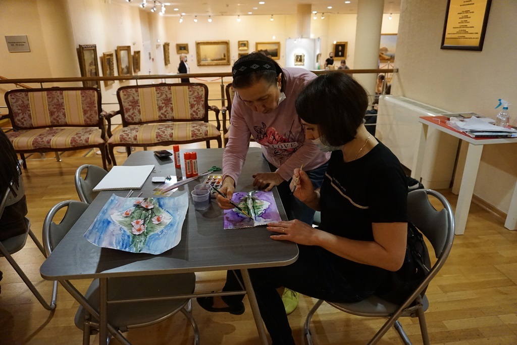 Специально для детской аудитории был подготовлен творческий мастер-класс «Звуки на воде» в технике эбру, а в рубрике «Музей - детям» опубликована загадка «Угадай картину».