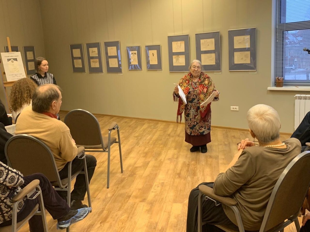 В литературный диалог вступили гости мероприятия: первая хантыйская поэтесса и сказительница Мария Кузьминична Волдина зачитала свои стихотворения, посвященные военной теме.